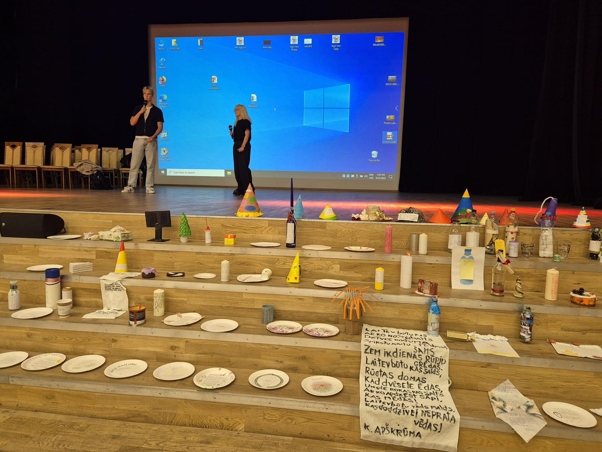 Īpašu uzdevumu bija sagatavojusi skolas bibliotekāre Madara Vīlipa- rakstīt dzeju, izmantojot piedāvātos vārdus, savukārt skolas dramatiskā kolektīva vadītāja Rita Reliņa gan skandēja dzeju, gan spēlēja ģitāru un dziedāja . VAI DZIESMAS VĀRDI IR DZEJA?