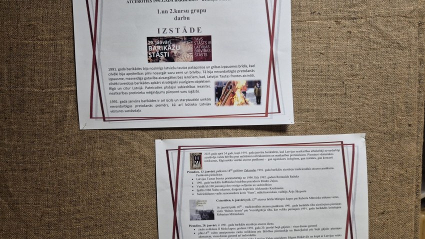 1. un 2. kursu audzēkņu veidoti darbi izstādei “Atceroties 1991. gada barikādes – atmiņu stāsti", kurā tika apkopoti un izvietoti savu radinieku vai paziņu atmiņu stāsti.