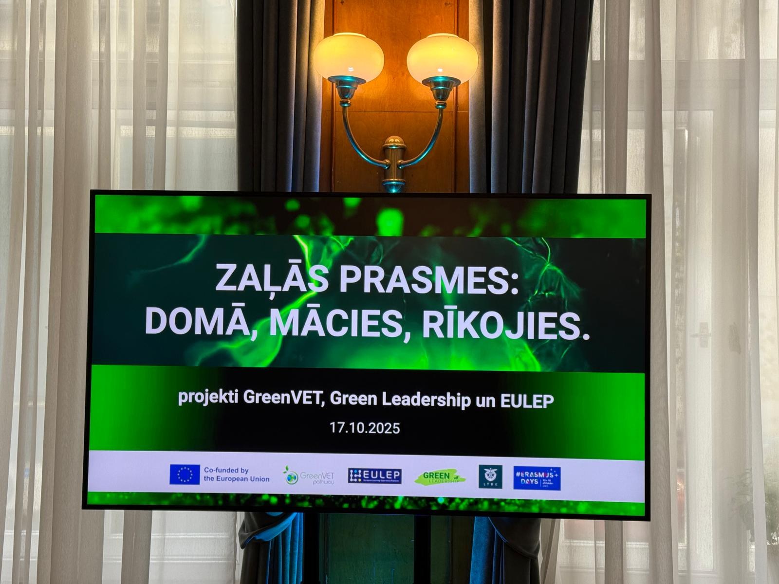 Piektdien, 17.oktobrī 2025.gadā mūsu Ekoskolas koordinatore Anna Shapovalova piedalījās konferencē "Zaļās prasmes: domā, mācies, rīkojies" – kā profesionālā izglītība veido nākotnes zaļās prasmes un iedvesmo ilgtspējīgām pārmaiņām. Konferenci organizēja Latvijas Tirdzniecības un rūpniecības kamera Erasmus+ projektu “Green Leadership”, “GreenVET” un “EULEP” ietvaros.