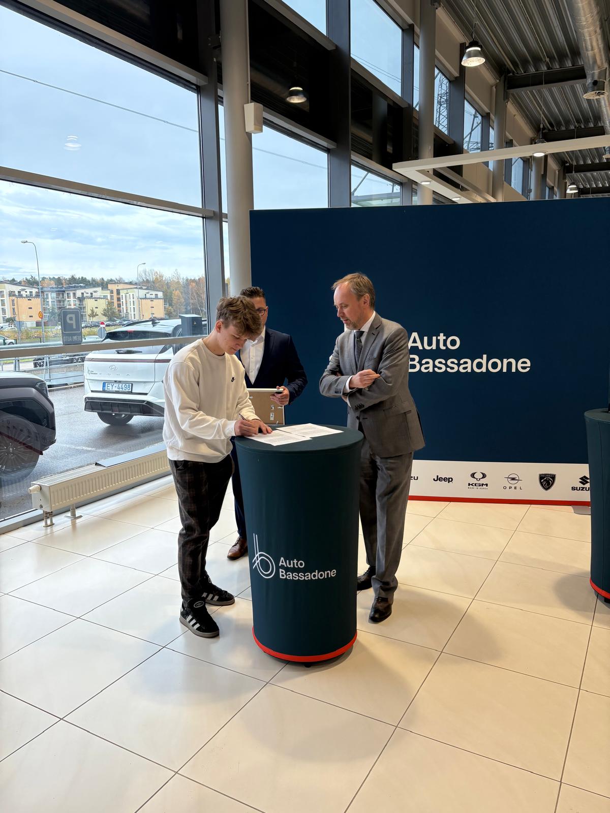 Rīgas Tehniskās koledžas AM 23-3 grupas audzēknim Adrianam Koreckim un AM24-2 audzēknim Patrikam Vikmanim ar SIA “Auto Bassadone”.