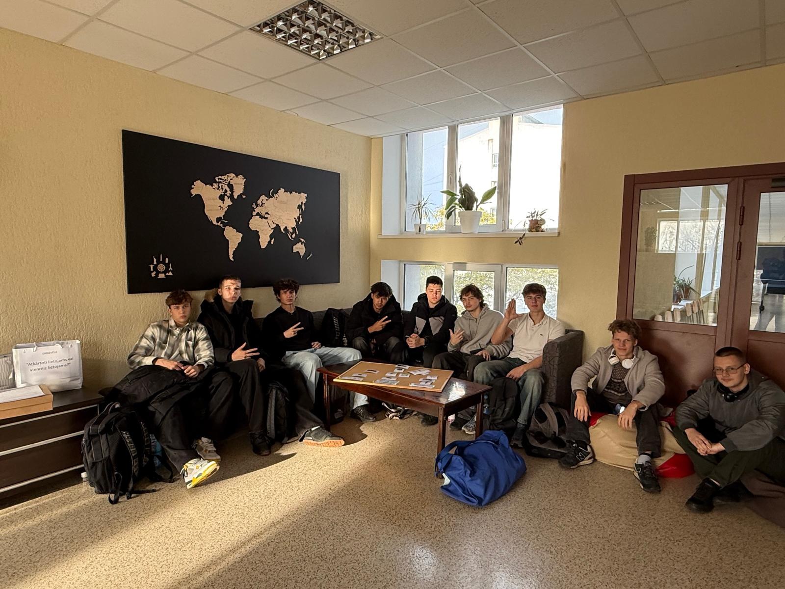 spēlēja ar RTK audzēkņiem spēli, kuru izveidoja biedrība Zaļā brīvība projekta “Ar cieņu par pārtiku”