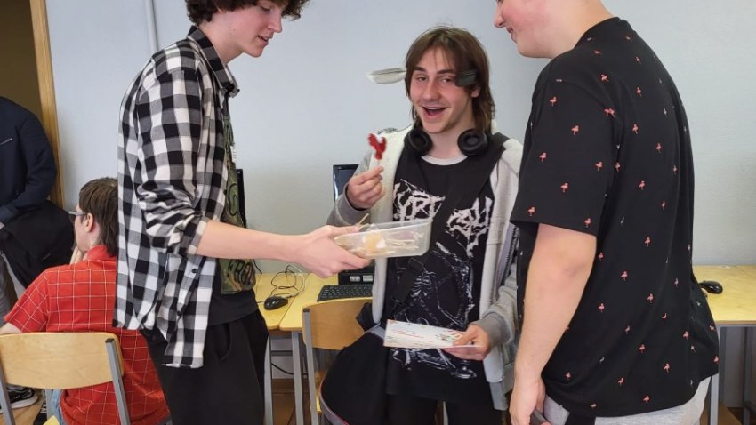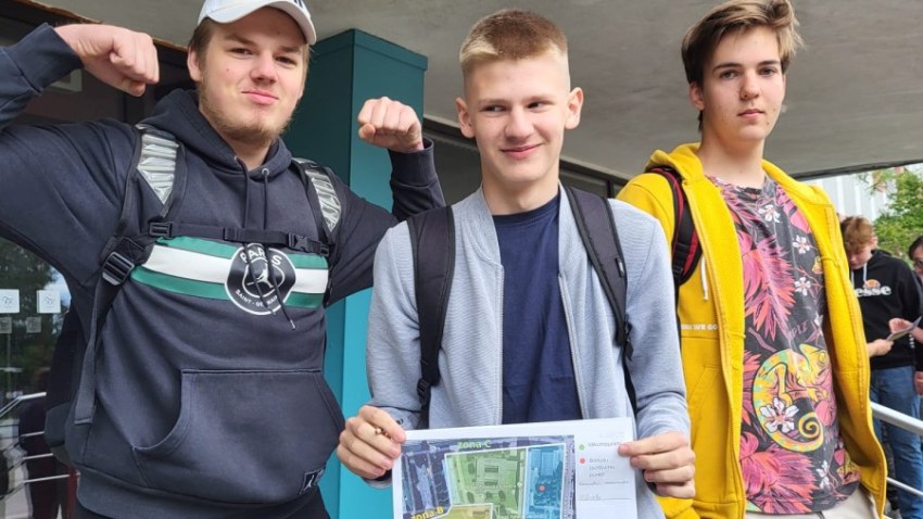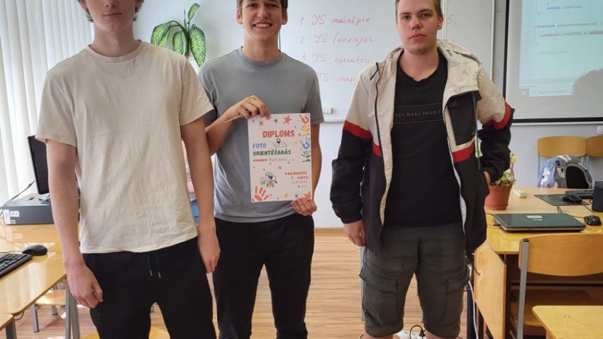 P1-2 grupas audzēkņi Laila Bicāla, Kristers Patriks Feldbergs, Ralfs Jefimovs