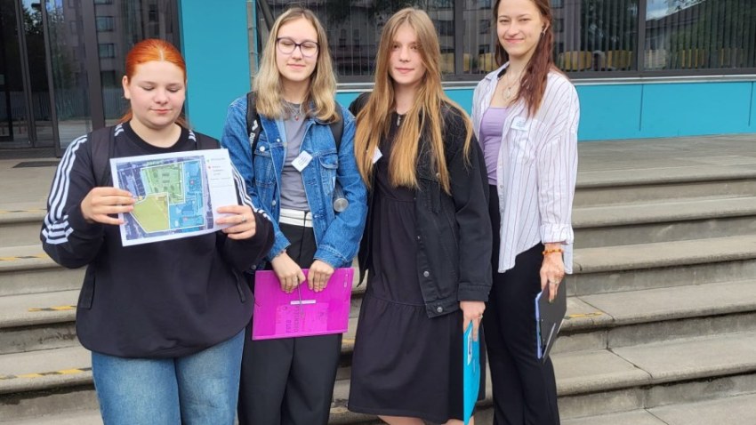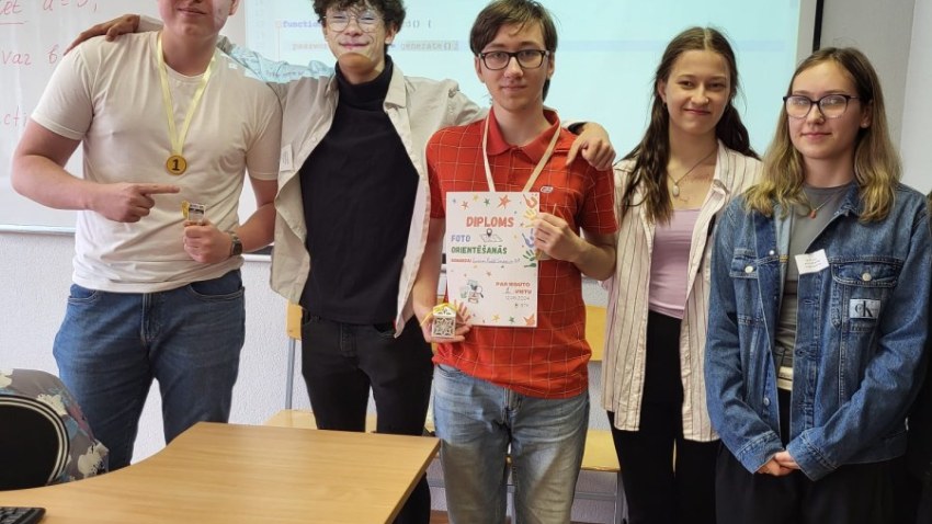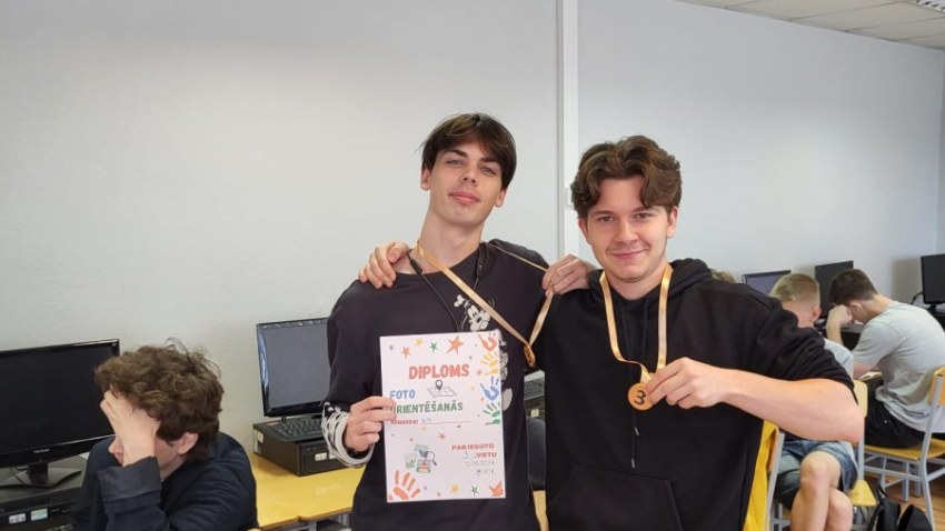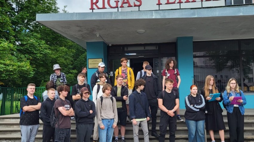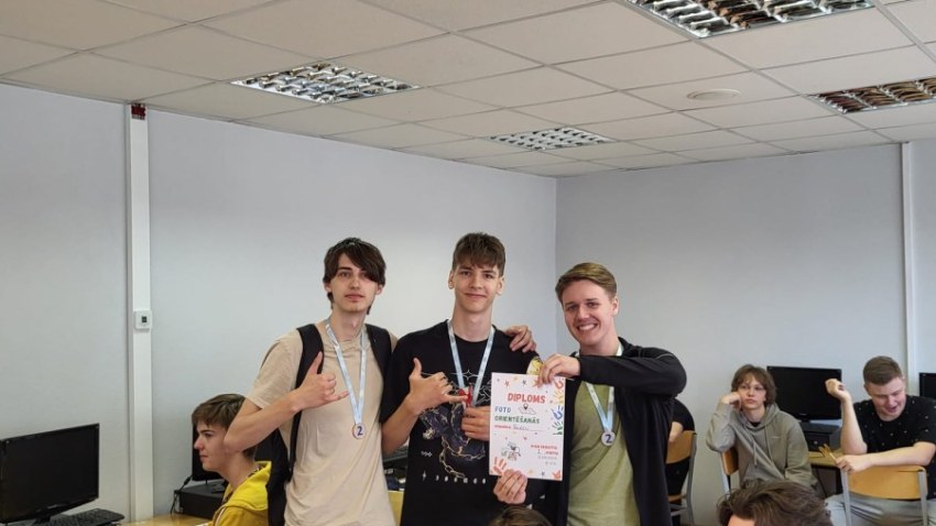 P1-1 grupas audzēkņi Aimens Vēveris, Artis Čaunāns, Anna Komova, Ariana Terehova