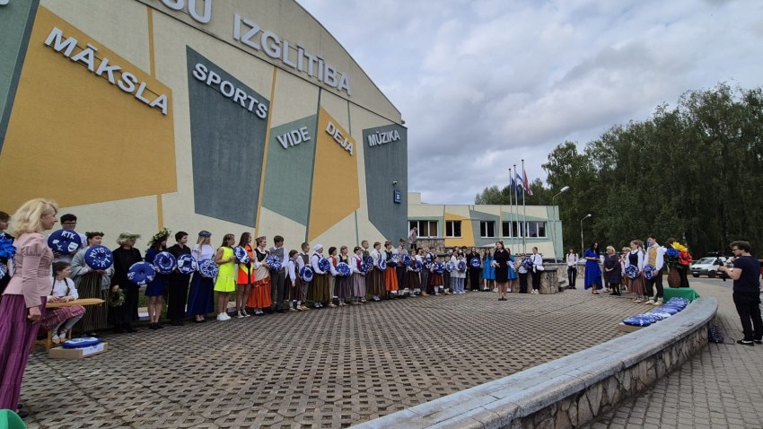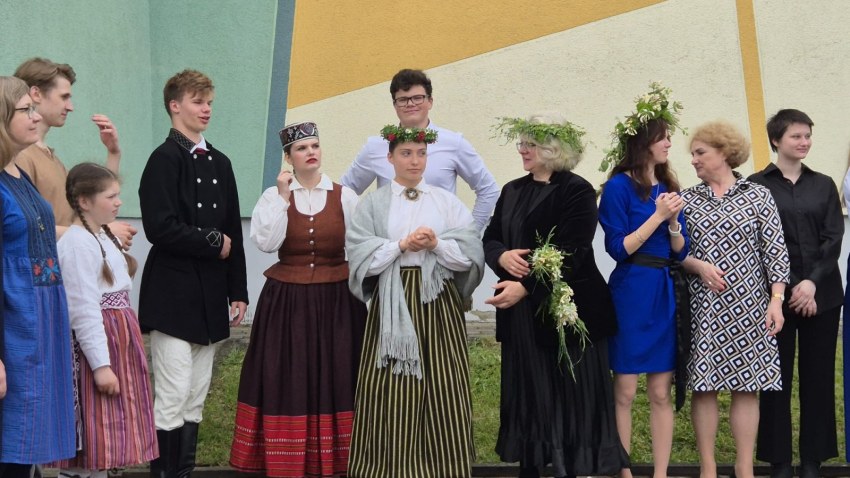Rīgas Tehniskās koledžas pašdarbības kolektīvi, gatavojoties Latvijas skolu dziesmu un deju svētkiem, apgleznoja savu pērli.