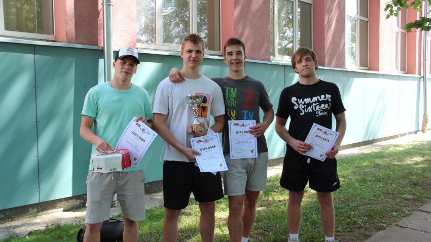 Apsveicam ar izcīnīto 1.vietu komandu „Konsultācija trijos”- O.Paeglekalns- sporta skolotājs, R.Rusanovs – sporta skolotājs, M.Zemturis – sporta skolotājs, R.Kleinbergs EL-3 (topošais sporta skolotājs)!
