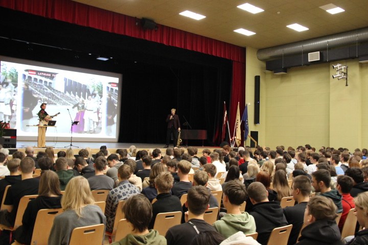 Pēc svinīgajām uzrunām klausījāmies valsts svētku tēmai veltīto koncertu "Man patīk dzīvot Latvijā", kurā skanēja jaunās paaudzes Latvijas komponistu mūzika.