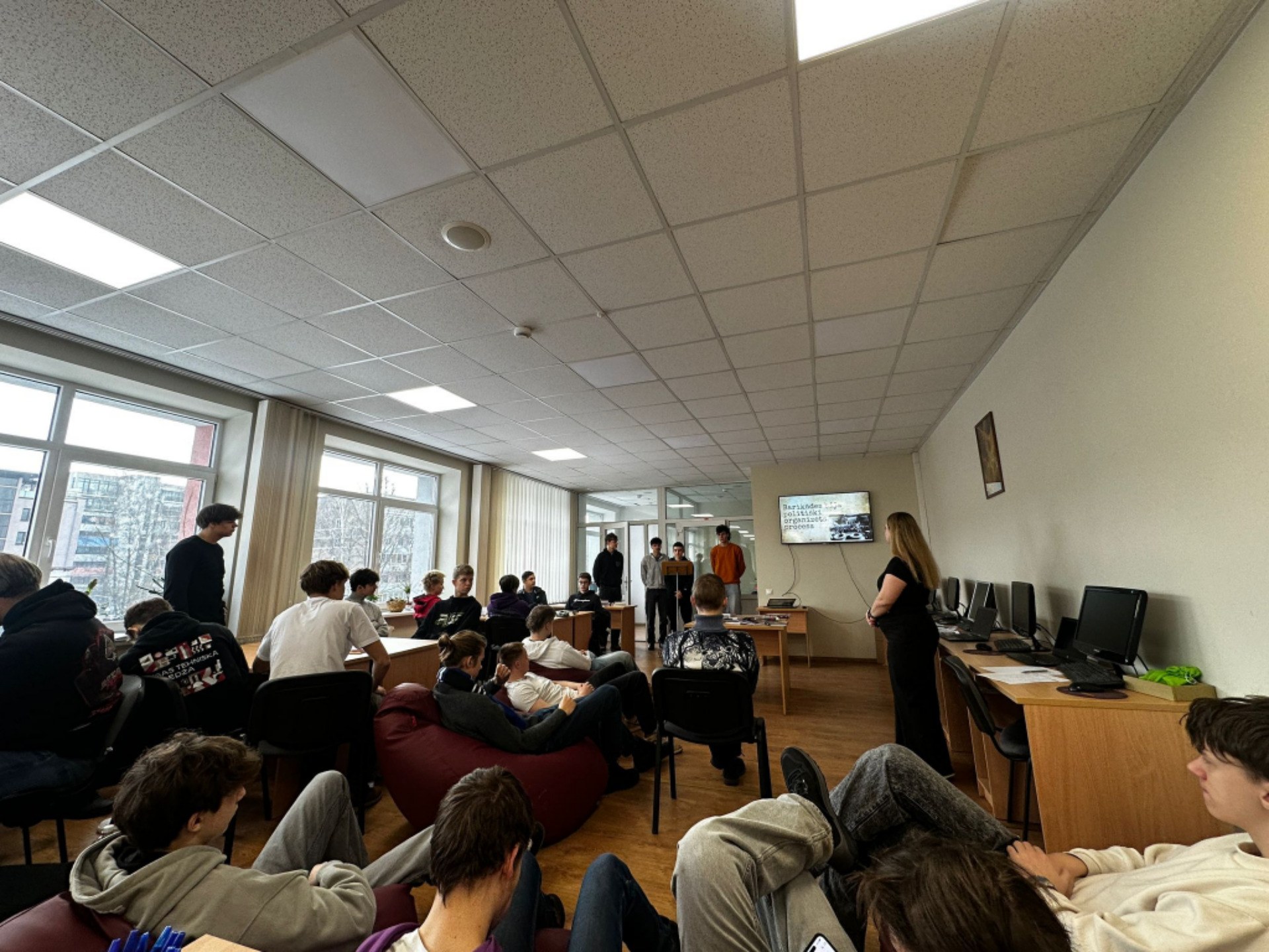 Nodarbības sākumā audzēkņiem bija trīs dažādas stacijas, kurās bija jāaizpilda krustvārdu mīkla, jāsavieno zināmas personības ar viņu ideoloģijām un jāsaliek pareizi idejas un notikumi hronoloģiskā secībā.