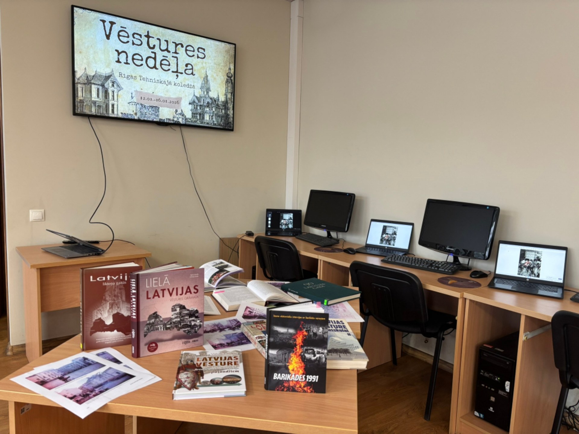 No 12.01. līdz 16.01.2026 norisinājās vēstures nedēļa. Vēstures skolotājs Reinis Pudāns ar audzēkņiem veidoja plakātus, kuros tika atspoguļota Barikāžu tēma, kā arī ar pirmo un otro kursu audzēkņiem vēstures stundas ietvaros skatījās dokumentālo filmu “Tautas cietoksnis. Barikādes 1991”. Sociālo zinību un vēstures skolotāja Darja Korabicka sadarbībā ar bibliotekārēm īstenoja piecas nodarbības bibliotēkā otro kursu audzēkņiem.