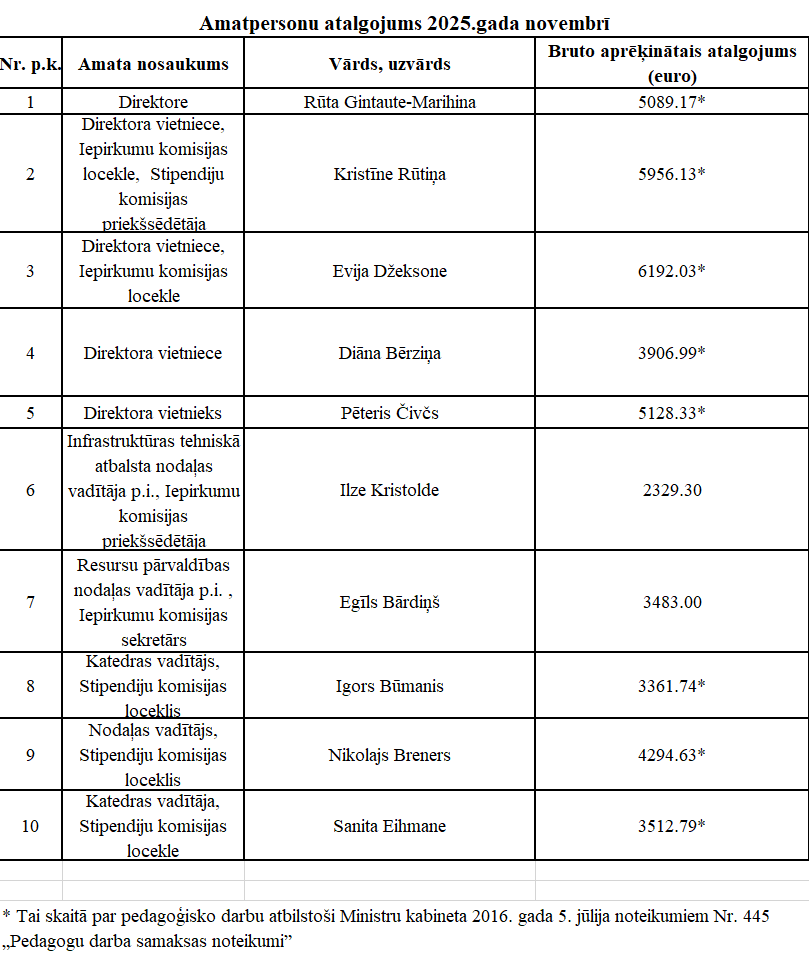 Amatpersonu atalgojums novembris 2025Koledžas darbinieku ārvalstu komandējumu izdevumiem 2025.gada III ceturksnī