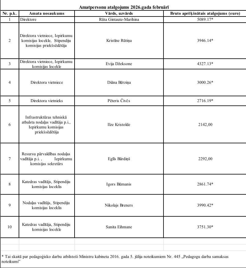 Amatpersonu atalgojums februāris 2026Koledžas darbinieku ārvalstu komandējumu izdevumiem 2025.gada IV ceturksnī