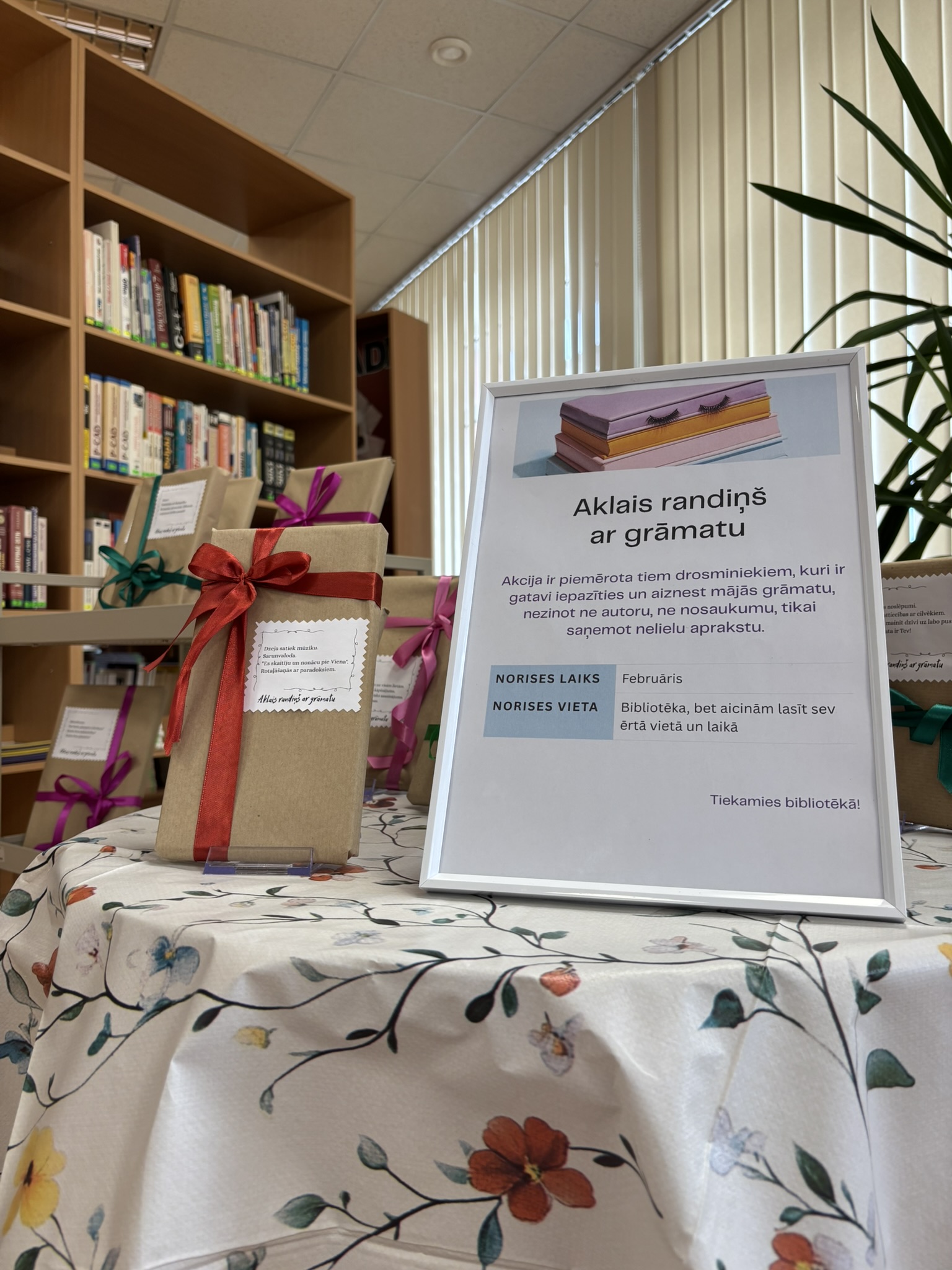 Februārī Rīgas Tehniskās koledžas bibliotēkā norisinās līdz šim nebijusi akcija - "Aklais randiņš ar grāmatu". Akcija ir piemērota tiem drosminiekiem, kuri ir gatavi iepazīties un aiznest mājās grāmatu, nezinot ne autoru, ne nosaukumu, tikai saņemot nelielu aprakstu.