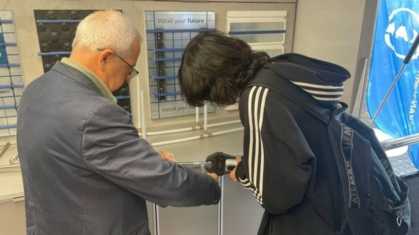 Rīgas Tehniskās koledžas siltumenerģētikas programmas audzēkņi apmeklēja inovatīvo siltumapgādes un ūdensapgādes sistēmu ražotāja KAN mobilo mācību centru.