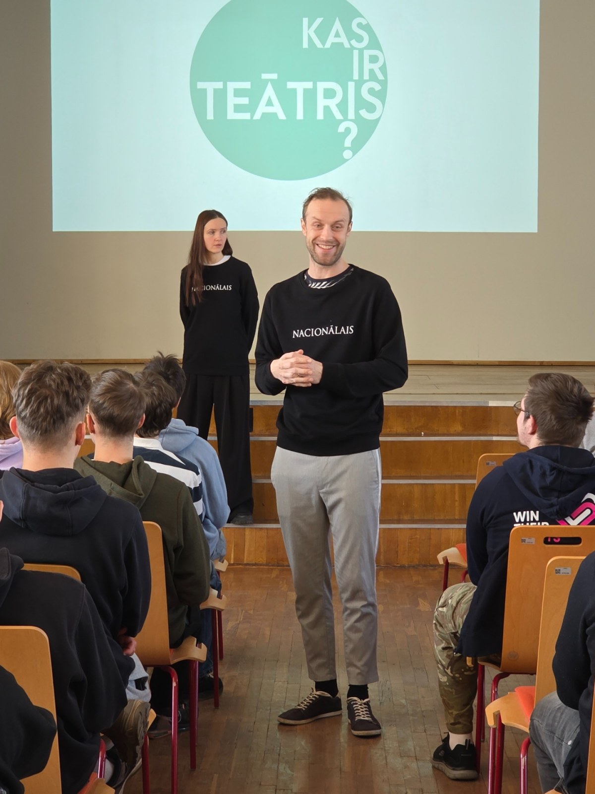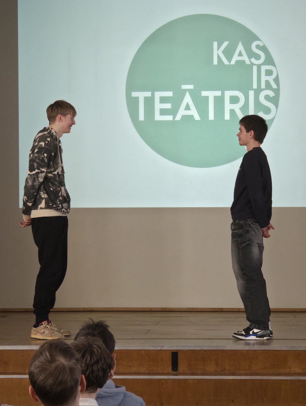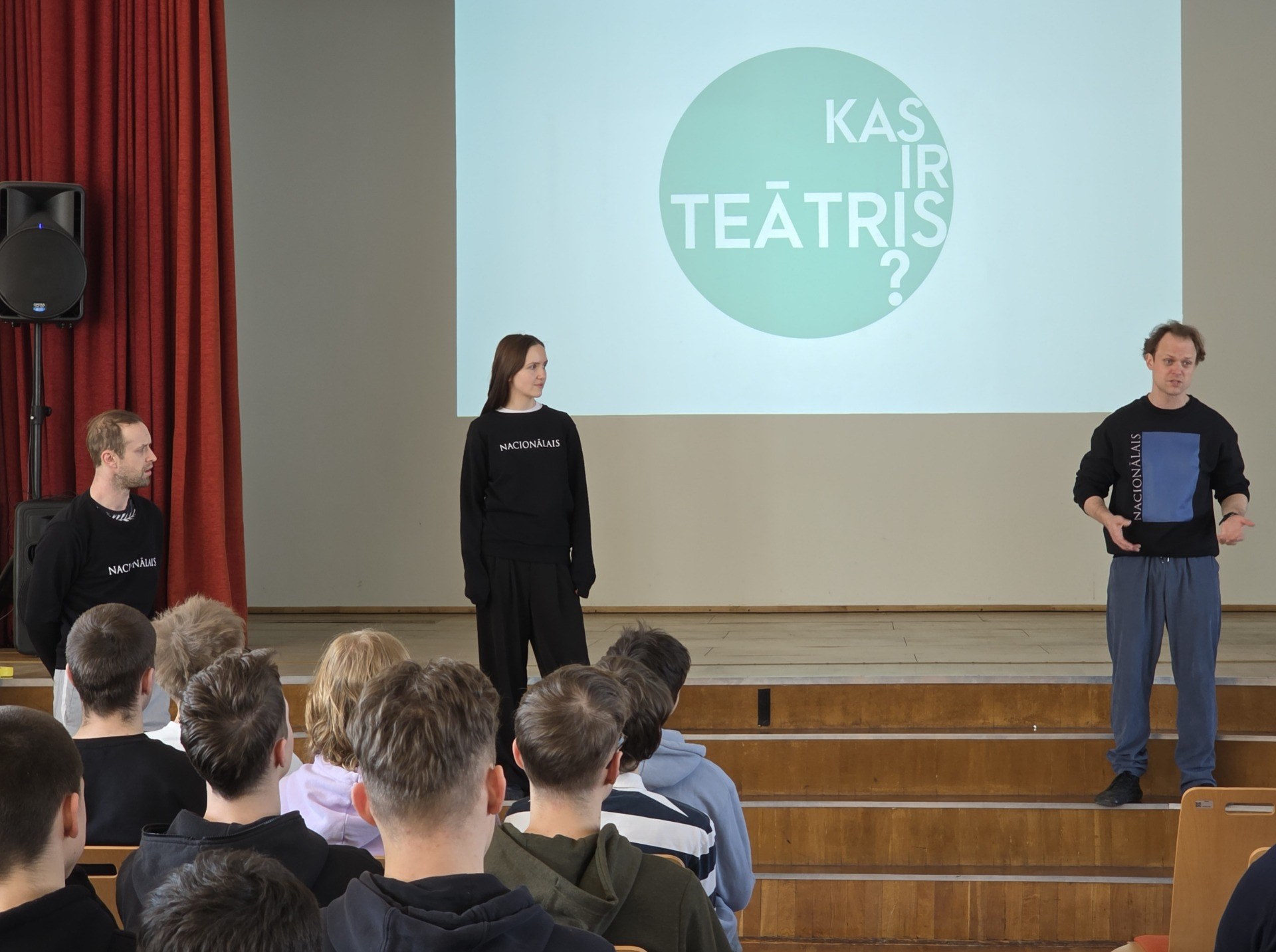 Jaunie aktieri stāstīja, ka izrādes var būt gan garlaicīgas , gan nesaprotamas, tās var būt šokējošas un pat neinteresantas. Svarīgi saprast, kas ir tās tēmas, kuras jaunieši vēlas redzēt teātrī. Nodarbībā tika demonstrēti video kadri no izrādēm, rādot piemērus, kā darbojas Latvijas Nacionālā teātra māja. Audzēkņiem bija arī iespēja uzzināt, kādu profesiju pārstāvji nepieciešami, lai nodrošinātu teātra darbību. Tie ir mēbeļu galdnieki, metālapstrādes speciālisti, elektrotehniķi un datortehniķi – profesijas, kuras var apgūt Rīgas Tehniskajā koledžā.