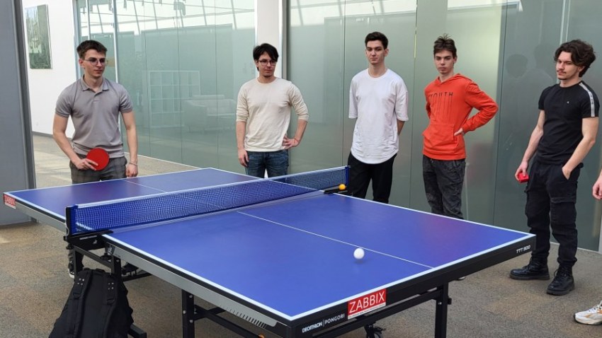 15. aprīlī P1-3 grupa kopā ar skolotāju Andri Jaunkalnu un grupas audzinātāju Natalliju Karatunu apmeklēja uzņēmumu Zabbix un uzzināja par izstrādātu tīkla monitoringa programmatūru un izmantotājām tehnoloģijām, kā arī par programmētāju darbu.