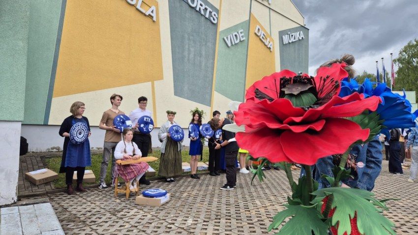 Rīgas Tehniskās koledžas pašdarbības kolektīvi, gatavojoties Latvijas skolu dziesmu un deju svētkiem, apgleznoja savu pērli.