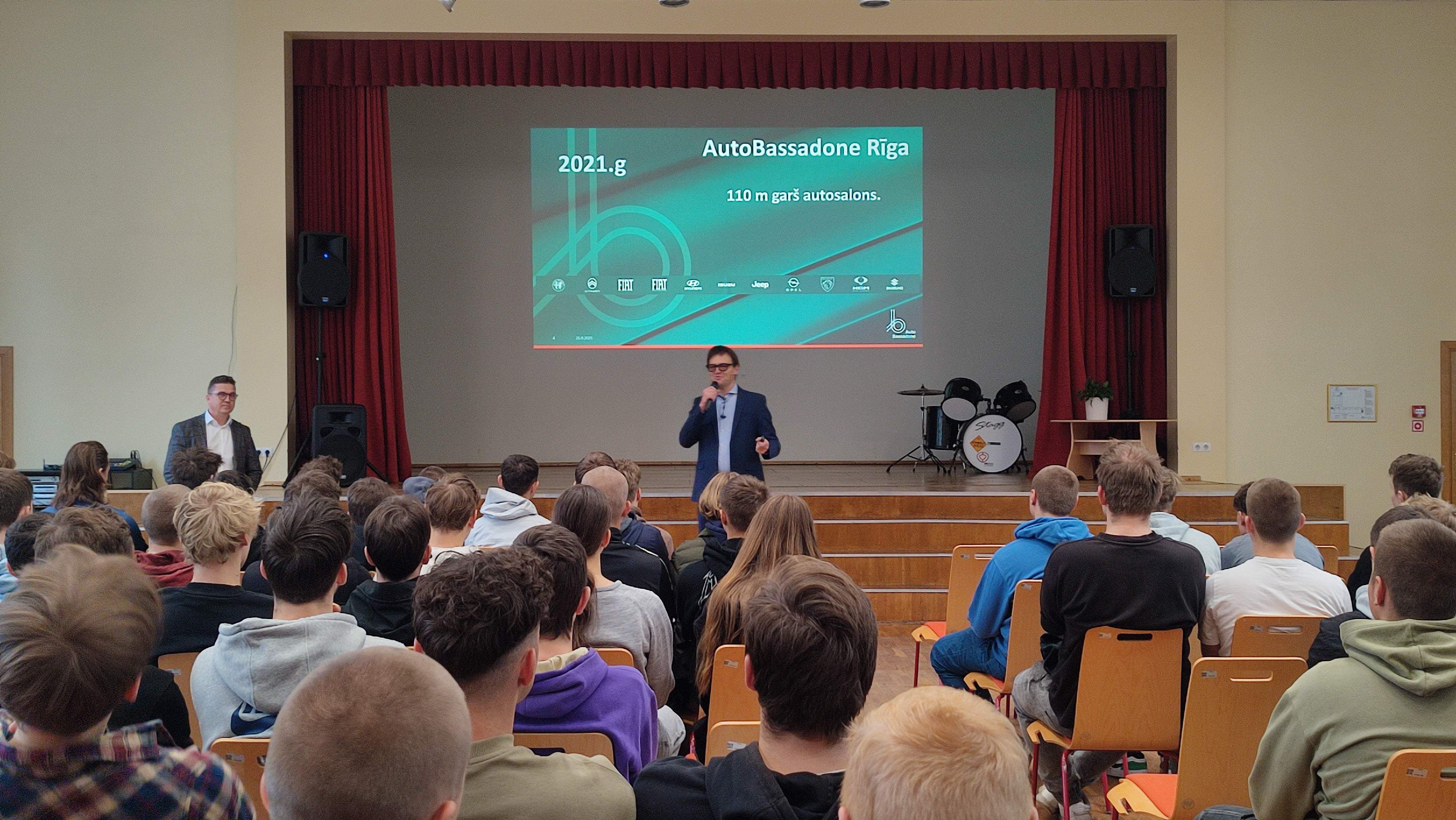 2025. gada 25.septembrī notika tikšanās ar SIA “Auto Bassadone”pārstāvjiem, kuri topošos automehāniķu speciālistus (AM22-1, AM22-2, AM23-1, AM23-2, AM23-3, AM24-1, AM24-2 un AM24-3) iepazīstināja ar prakses iespējām nozarē un Auto Bassadones stipendijas automehāniķu audzēkņiem iegūšanas iespējas.