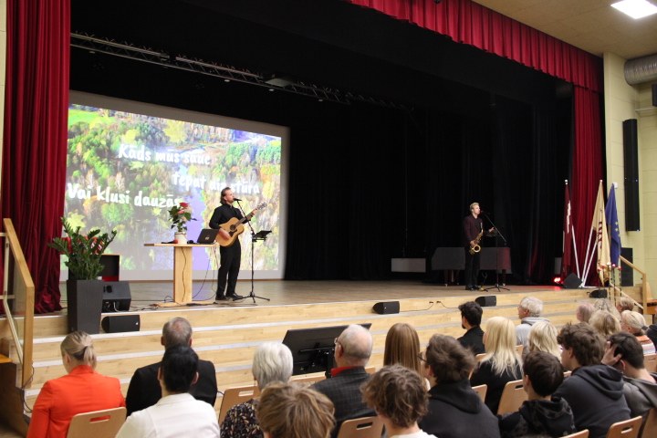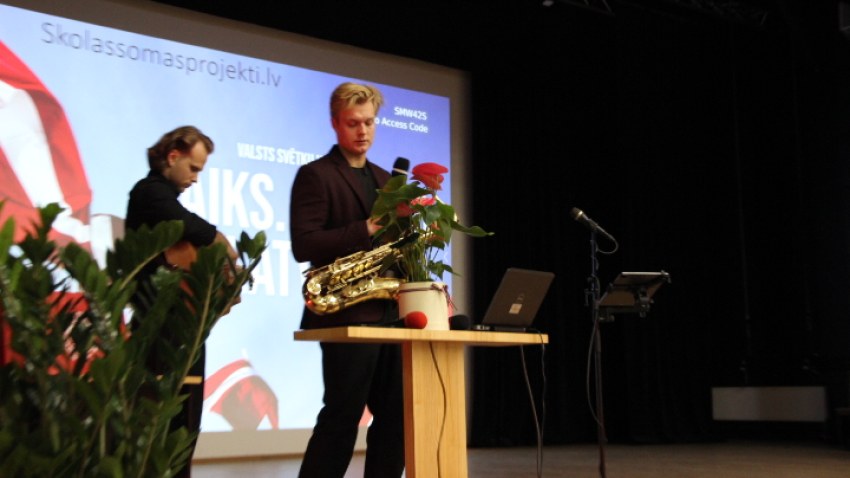 Pēc svinīgajām uzrunām klausījāmies valsts svētku tēmai veltīto koncertu "Man patīk dzīvot Latvijā", kurā skanēja jaunās paaudzes Latvijas komponistu mūzika.