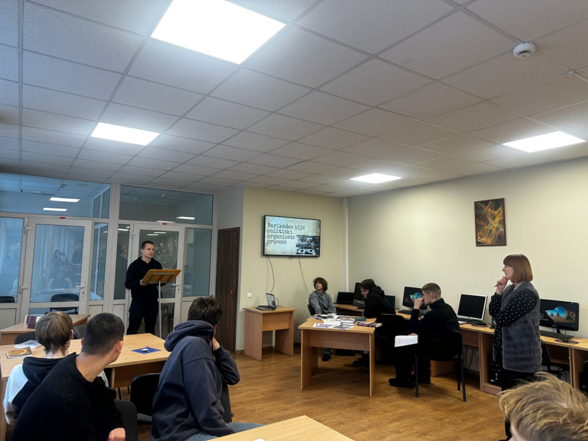 No 12.01. līdz 16.01.2026 norisinājās vēstures nedēļa. Vēstures skolotājs Reinis Pudāns ar audzēkņiem veidoja plakātus, kuros tika atspoguļota Barikāžu tēma, kā arī ar pirmo un otro kursu audzēkņiem vēstures stundas ietvaros skatījās dokumentālo filmu “Tautas cietoksnis. Barikādes 1991”. Sociālo zinību un vēstures skolotāja Darja Korabicka sadarbībā ar bibliotekārēm īstenoja piecas nodarbības bibliotēkā otro kursu audzēkņiem.